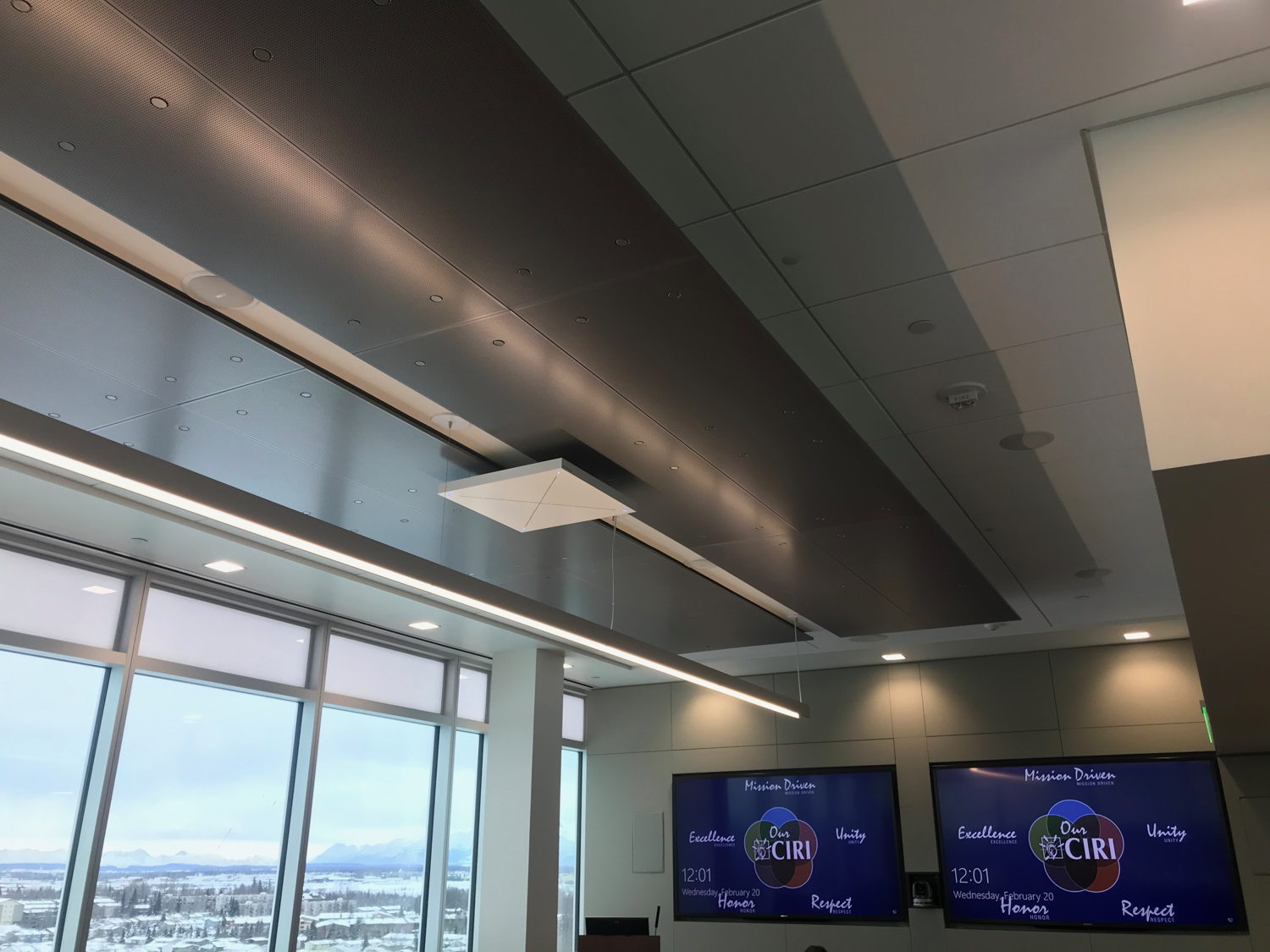 Anchorage, Alaska, November 19, 2019 – Headquartered in the eight-story Fireweed Business Center in Midtown Anchorage, Cook Inlet Region, Inc. (CIRI) hosts a regular stream of clients and guests, both in its top-floor executive boardroom as well as in the first floor conference center. So, when the corporation decided to upgrade the existing microphone systems in both spaces this year, Anchorage-based systems integrator Sound Decisions, LLC went with their first choice in keeping with the building’s innovative design: A virtually invisible ceiling microphone employing state-of-the-art technology — the Sennheiser TeamConnect Ceiling microphone with automatic beamforming technology.