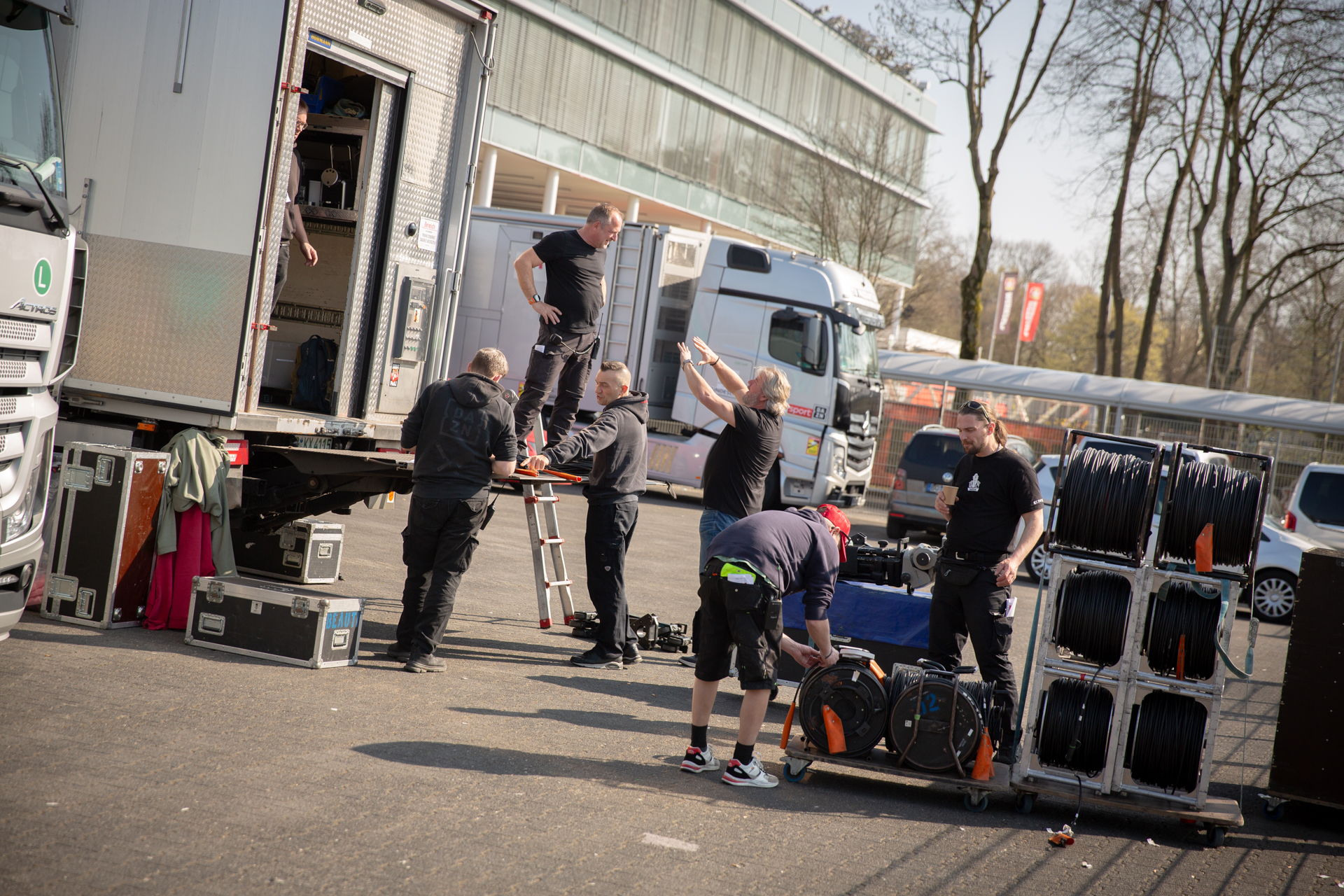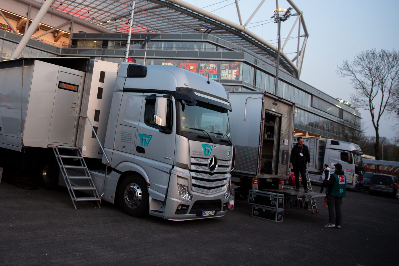 A few days before a match, TopVision is handed the production plan drawn up by Sportcast. “This gives a detailed specification of how the production is to be carried out,“ explains Ecki Kehrer. ”For example, how many cameras there are, how many reporters will be coming, how many broadcasters we will be serving and how many additional commentators we need to provide for. Do they need a monitor, do they need a commentary box place that is ‘fully equipped’ or only ‘partially equipped’? And our team then gets to work with the preparations.”