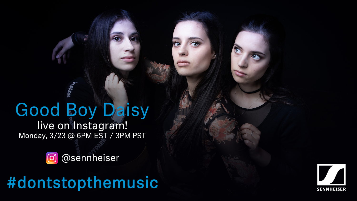 Wedemark/Germany, March 23, 2020 – Following concerts with Mousse T., Love Fame Tragedy, Logan D. and Madoc, #DontStopTheMusic, Sennheiser’s exclusive streamed concert series, continues with rock band Good Boy Daisy, singer-songwriter Katie Cole and Swiss-Chilean producer and DJ Luciano. More than ever, when many artists have had to cancel or postpone their live tours and with public life as we know it on hold, the music must not stop! To keep the beat going, Sennheiser has launched a series of streamed concerts on its Instagram account, which will be broadcast via Instagram livestream.