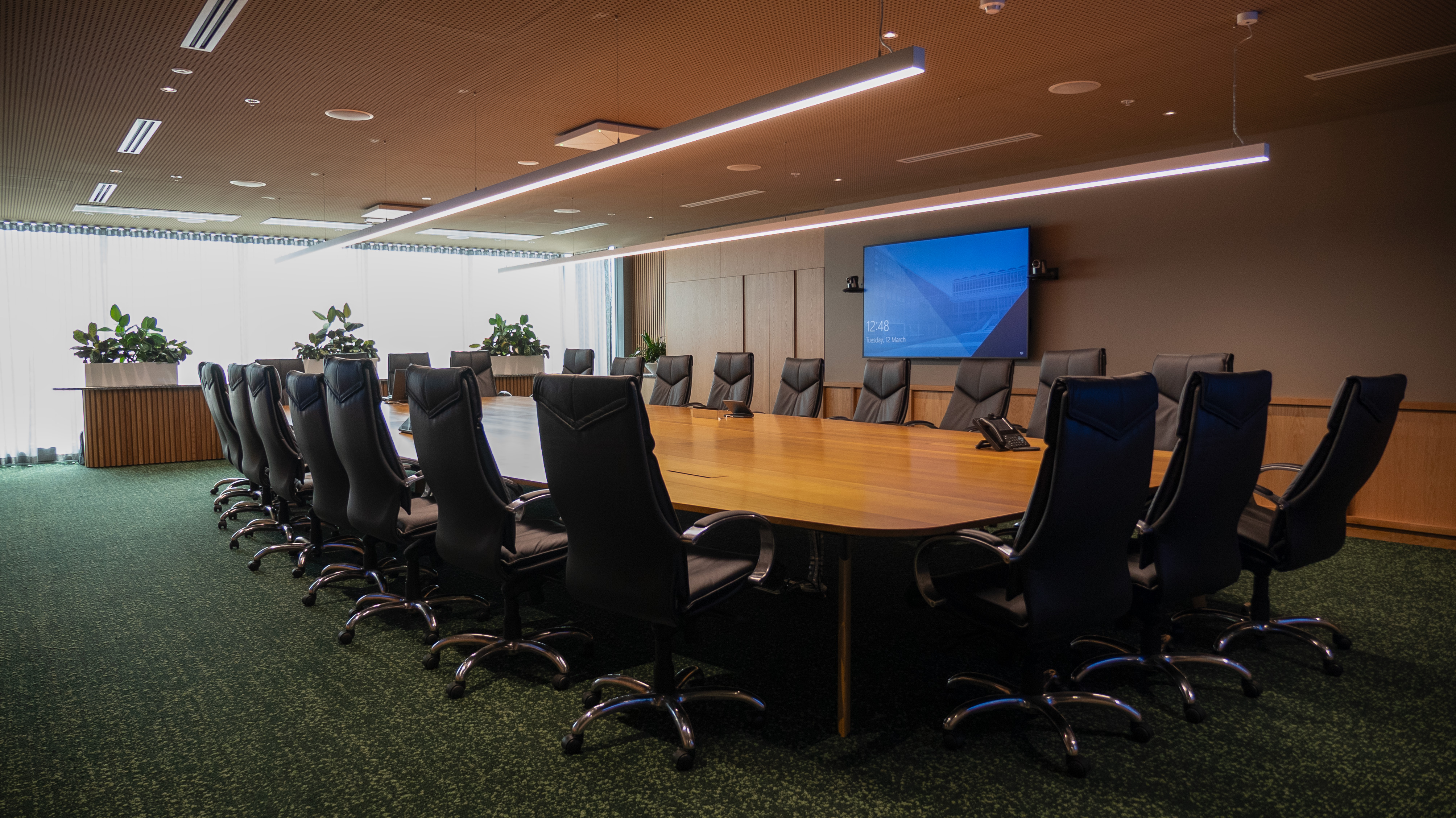 In addition to the education spaces, a 25-person boardroom at Flinders University is equipped with state-of-the-art technology to facilitate executive meetings and high-level collaborations. The boardroom features a Crestron Automate VX auto-tracking system. At the front end is a 98-inch NEC C series display then an 86-inch NEC C series display either side of the table, with a pair of One Beyond PTZ cameras.