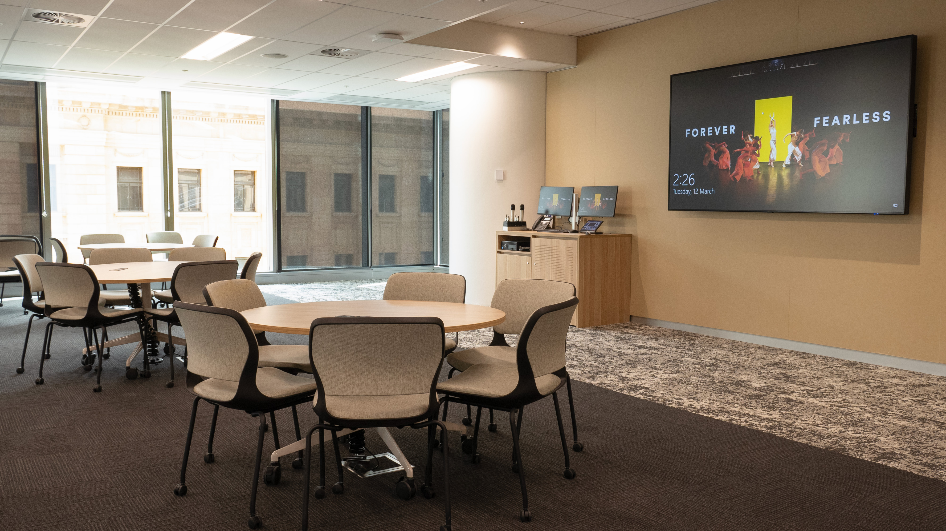 Before the design and fit-out, the Flinders University AV team embraced platforms that perfectly complemented modern teaching methodologies. Traditional lecture theatres have been transformed into vibrant, flat-floor, flexible spaces, promoting dynamic and interactive learning environments. Each room is thoughtfully equipped to support both physical and digital connectivity, featuring user-friendly stations for lecturers to easily connect laptops via HDMI for BYOD and USB/HDMI for the Room PC, thereby enriching conferencing capabilities and enhancing the overall educational experience.