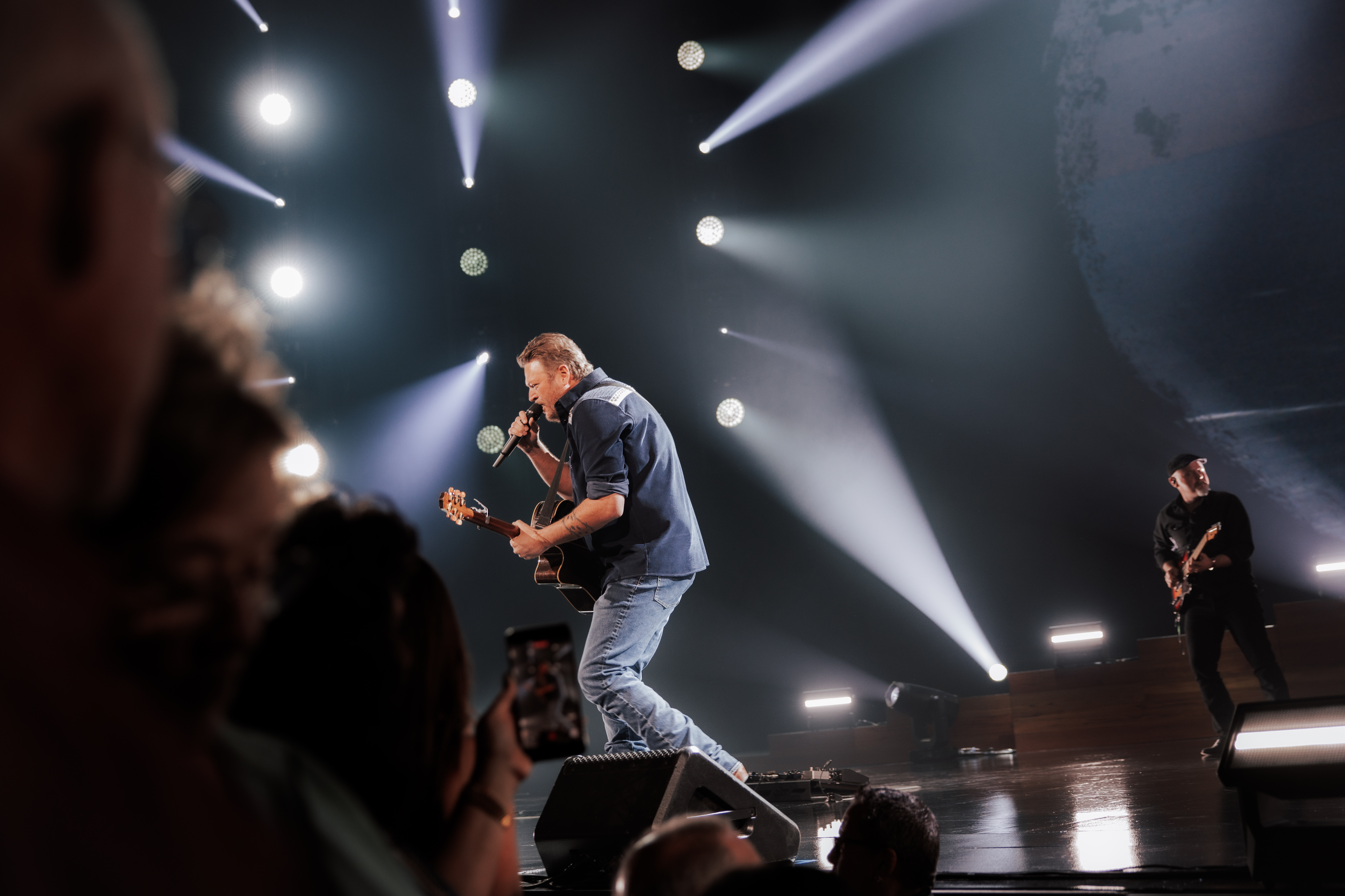 Spectera allowed Baisley and the rest of the crew on Blake Shelton’s Las Vegas residency to streamline wireless microphones and in-ear monitoring within a single wideband RF ecosystem. Photo credit: Brad Baisley.