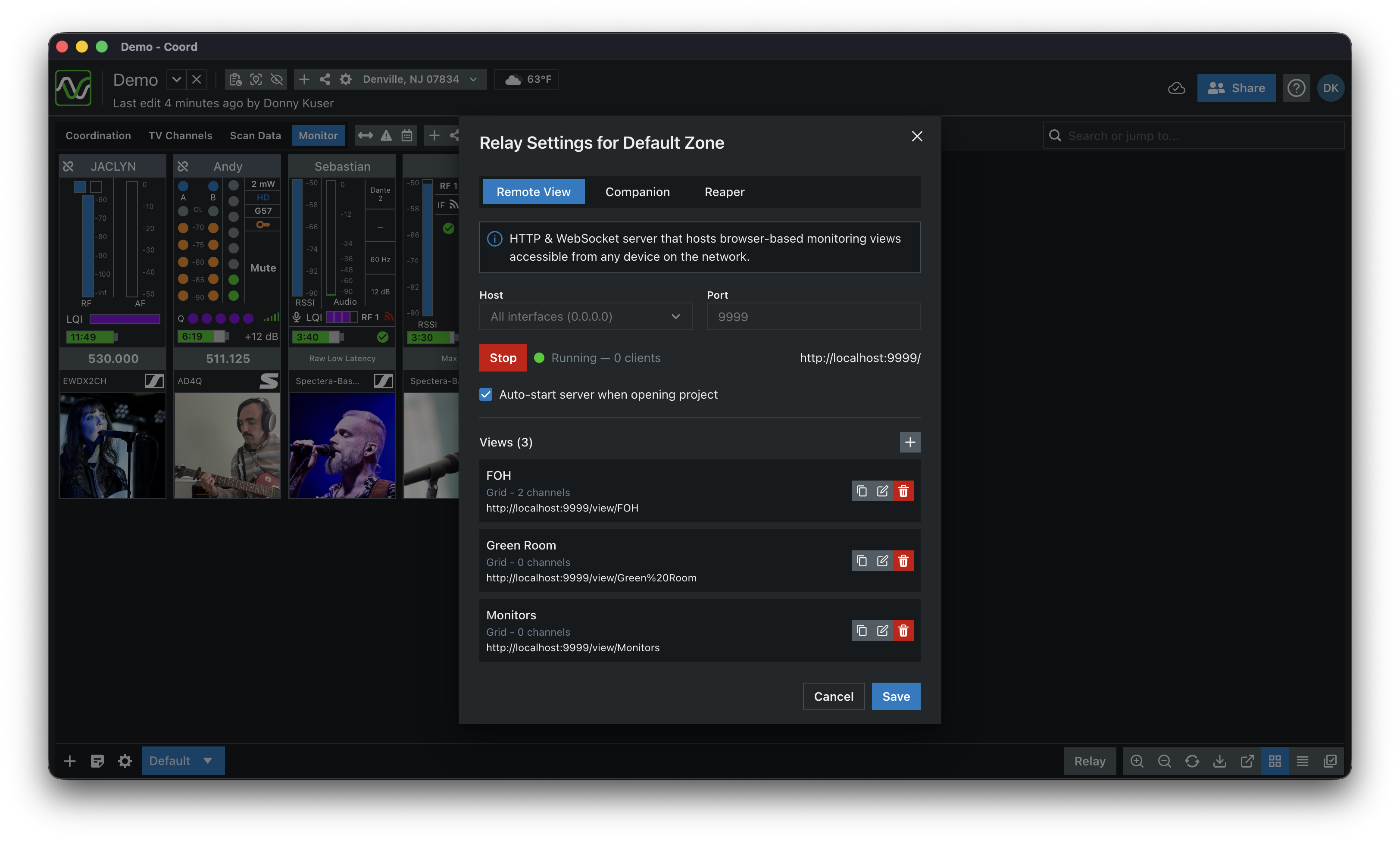 “Remote View is a much smarter way to share wireless hardware telemetry across multiple endpoints without running duplicate instances of software,” says Donny Kuser, co-founder of SoundBase. “By reducing connections and network traffic, your control network stays efficient and your gear stays responsive.”