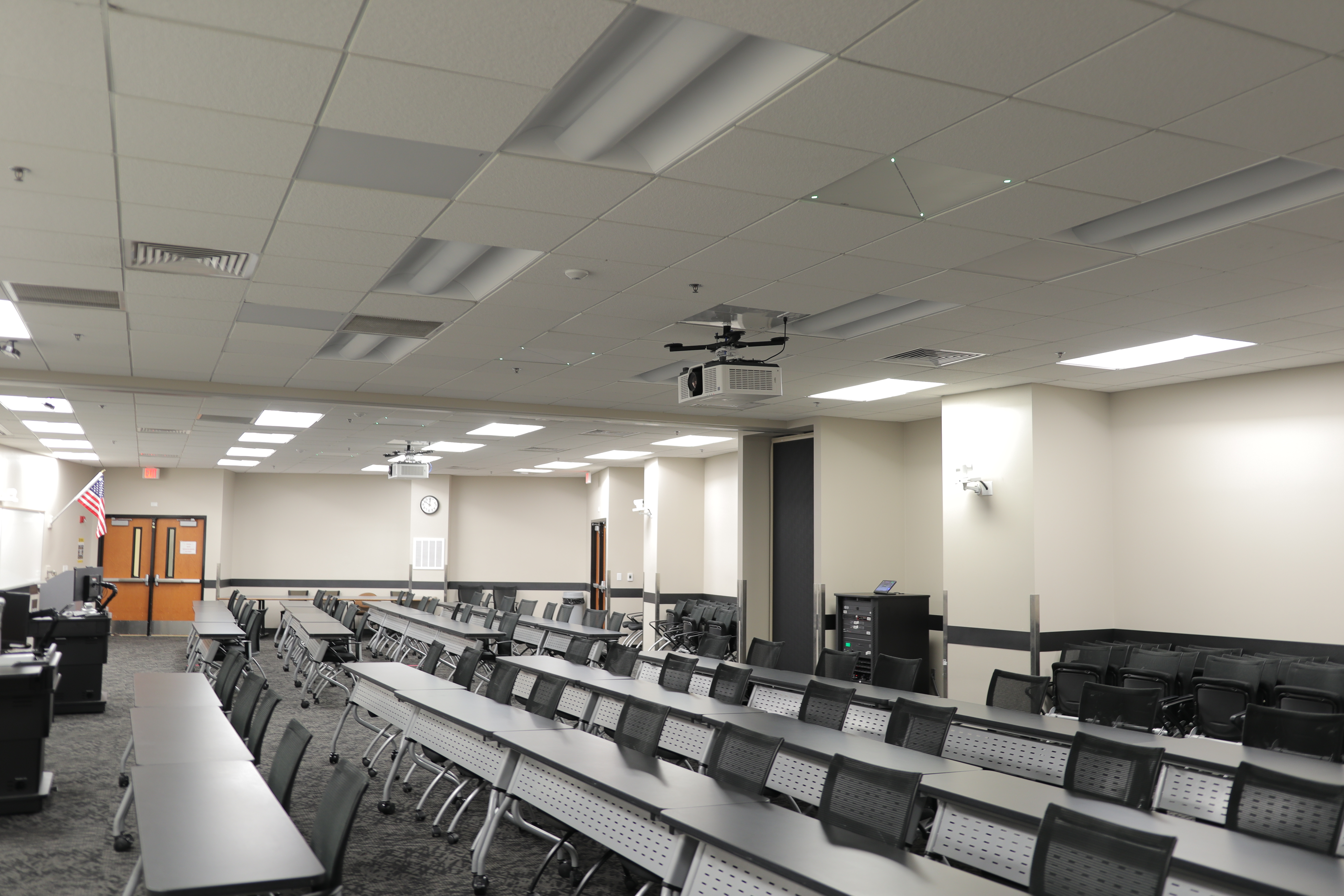 UCF sought a solution to address the challenges of providing clear and consistent audio in large, dynamic spaces. Traditional microphone setups, involving numerous devices strewn across tables and a significant wireless footprint, proved costly and difficult to deploy. Sennheiser's TCC 2 offers a streamlined solution via its ceiling-mounted, beamforming technology, effectively covering large areas without the need for extensive hardware. This is particularly crucial for UCF's high-profile, reconfigurable spaces, which host a constant flow of students, educators, and visitors that require flexible audio solutions. The ability to maintain a clean, uncluttered presentation environment while ensuring exceptional audio quality was a key factor in selecting the TCC 2. Further, the TCC 2 can be controlled via the existing Crestron control system UCF has deployed in each room.